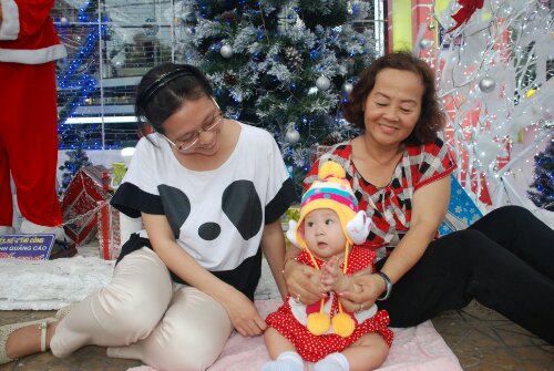 Tháng này em có quá trời hình :)) chủ yếu là hình noel, em ăn noel gần tuần lễ, ha ha, ngày nào mẹ với bà ngoại cũng rinh em đi kiếm chỗ đẹp chụp hình, nhớ lại còn mắc cười. Đến hùi dàn đèn ở ngoài đại lộ Hòa Bình làm xong, mẹ cũng tính mần vài tấm kỷ niệm cho em, nhưng chạy xe chưa thấy tăm hơi của dàn đèn đường đâu là mẹ nghe bà ngoại nói “xong rồi đó nghen Các, coi đèn xong rồi đó nghen!” Ngoái lại dòm thì em đã ngủ thẳng cẳng trên tay bà ngoại :))